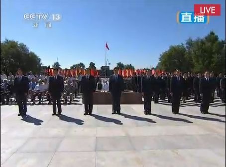 全場(chǎng)肅立,向在中國人民抗日戰(zhàn)爭(zhēng)中英勇犧牲的烈士們默哀。