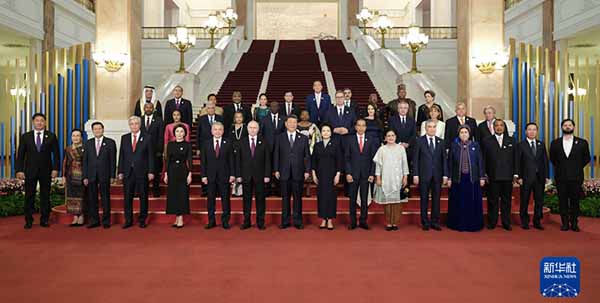 10月17日晚,國家主席習近平和夫人彭麗媛在北京人民大會堂舉行宴會,歡迎來華出席第三屆“一帶一路”國際合作高峰論壇的國際貴賓。這是習近平發(fā)表致辭,代表中國政府和中國人民對各位嘉賓出席第三屆“一帶一路”國際合作高峰論壇表示熱烈歡迎。 新華社記者 鞠 鵬攝 10月17日晚,國家主席習近平和夫人彭麗媛在北京人民大會堂舉行宴會,歡迎來華出席第三屆“一帶一路”國際合作高峰論壇的國際貴賓。這是習近平和彭麗媛同國際貴賓合影留念。 新華社記者 李學仁攝 新華社北京10月17日電 (記者楊依軍、孔祥鑫)10月17日晚,國家主席習近平和夫人彭麗媛在人民大會堂舉行宴會,歡迎來華出席第三屆“一帶一路”國際合作高峰論壇的國際貴賓。李強、趙樂際、王滬寧、蔡奇、丁薛祥、李希、韓正出席。 秋日北京,夕陽入畫,天安門廣場華燈綻放,人民大會堂莊嚴輝煌。 出席高峰論壇的外國國家元首、政府首腦、國際組織負責人等國際貴賓及配偶陸續(xù)抵達人民大會堂。禮兵列隊致敬。150多面共建“一帶一路”國家國旗和聯(lián)合國旗,整齊分列紅毯兩側,恢宏壯觀。 習近平和彭麗媛熱情迎接外方領導人夫婦,同他們一一握手,并集體合影留念。 在迎賓曲中,習近平和彭麗媛同貴賓們共同步入金色大廳。 習近平發(fā)表致辭,代表中國政府和中國人民對各位嘉賓出席第三屆“一帶一路”國際合作高峰論壇表示熱烈歡迎。 習近平指出,“春發(fā)其華,秋收其實?!惫步ā耙粠б宦贰背h提出10年來,中國同各方合作伙伴一道,弘揚和平合作、開放包容、互學互鑒、互利共贏的絲路精神,共同為全球互聯(lián)互通貢獻力量,為國際經(jīng)濟合作搭建平臺,為世界經(jīng)濟增長增添動力。我們開展了數(shù)千個務實合作項目,收獲了實打實、沉甸甸的成果,共同繪就聯(lián)結世界、美美與共的壯闊畫卷。這些成就是各國政府、企業(yè)和人民用勤勞、智慧、勇氣干出來的!讓我們向共建“一帶一路”所有的參與者、建設者致敬! 習近平強調,共建“一帶一路”追求的是發(fā)展,崇尚的是共贏,傳遞的是希望。唯有自強不息、不懈奮斗,才能收獲累累果實,才能建立利在千秋、福澤萬民的長久之功。這是我們這一代政治家對當代人和后代人的責任。共建“一帶一路”走過了第一個蓬勃十年,正值風華正茂,務當昂揚奮進,奔向下一個金色十年! 習近平指出,當今世界并不太平,世界經(jīng)濟下行壓力增大,全球發(fā)展面臨諸多挑戰(zhàn),但我們堅信,和平、發(fā)展、合作、共贏的歷史潮流不可阻擋,人民對美好生活的向往不可阻擋,各國實現(xiàn)共同發(fā)展繁榮的愿望不可阻擋。只要我們堅守合作初心,牢記發(fā)展使命,高質量共建“一帶一路”一定能煥發(fā)出時代光彩,在我們的共同努力中開創(chuàng)人類更加美好的未來!(致辭全文見第二版) 宴會后,習近平和彭麗媛同貴賓們共同觀看《絲路同行》文藝演出,感受“一帶一路”國家多彩文明和燦爛文化的交流互鑒、美美與共。 王毅、尹力、李書磊、何立峰、王小洪等出席上述活動。 《 人民日報 》( 2023年10月18日 01 版) (責編:楊光宇、胡永秋) |