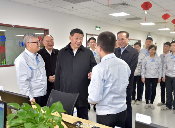 習(xí)近平來到重慶京東方光電科技有限公司考察,在柔性屏、超高清顯示屏等產(chǎn)品前觀看演示,了解8.5代液晶面板生產(chǎn)工藝流程,用放大鏡貼著玻璃面板觀看里面的電路。他說,五大發(fā)展理念,“創(chuàng)新”擺在第一位,一定要牢牢把創(chuàng)新抓在手里,把創(chuàng)新搞上去。