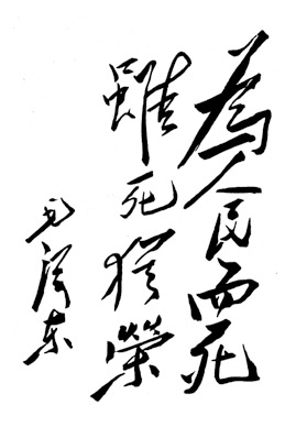 走進“四·八”烈士陵園就看到了它的宏偉壯觀,一座漢白玉紀念塔高聳在墓園中間,塔高19.46米,寓意1946年,塔身后部呈4層階梯式,塔下有8級臺階,應該是象征4月8日。塔尖上有象征中國共產黨的黨徽,金光閃爍,塔身正面嵌著毛主席手書的“為人民而死雖死猶榮” 的鎦金大字,正面塔座上雕砌著一只漢白玉花環(huán)。塔座右側勒記“四八烈士遇難碑記”。王若飛墓居頂端中央,處于核心地位, 然后為“四·八”遇難烈士和在延安時期犧牲的重要領導人和知名人士,葉挺、秦邦憲、關向應、張浩、鄧發(fā)、黃齊生、楊松、張思德、張寒暉等。