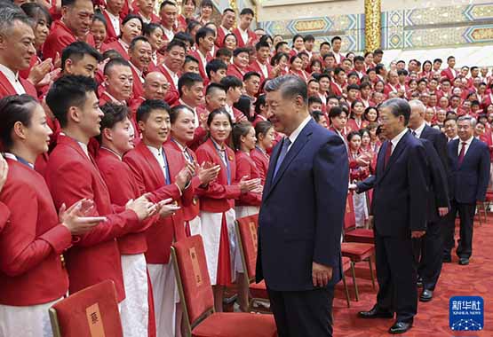 本報北京8月20日電 中共中央總書記、國家主席、中央軍委主席習(xí)近平20日下午在人民大會堂接見第33屆夏季奧林匹克運動會中國體育代表團(tuán)全體成員。他強(qiáng)調(diào),在巴黎奧運會上,你們團(tuán)結(jié)一心、頑強(qiáng)拼搏,奮勇爭先、不負(fù)使命,取得我國參加夏季奧運會境外參賽歷史最好成績,實現(xiàn)了比賽成績和精神文明雙豐收,為祖國和人民贏得了榮譽。他代表黨中央和國務(wù)院歡迎大家凱旋,向大家致以熱烈祝賀和誠摯慰問,并向全國體育戰(zhàn)線的同志們表示親切問候。 中共中央政治局常委趙樂際、王滬寧、蔡奇、李希,國家副主席韓正參加接見。 人民大會堂金色大廳洋溢著喜慶熱烈的氣氛。下午3時20分許,習(xí)近平等黨和國家領(lǐng)導(dǎo)人來到代表團(tuán)成員中間,全場響起長時間熱烈掌聲。習(xí)近平等同大家親切握手,并合影留念。 ■在巴黎奧運會上,你們團(tuán)結(jié)一心、頑強(qiáng)拼搏,奮勇爭先、不負(fù)使命,取得我國參加夏季奧運會境外參賽歷史最好成績,實現(xiàn)了比賽成績和精神文明雙豐收,為祖國和人民贏得了榮譽 ■中國體育代表團(tuán)的優(yōu)異成績,既是我國體育事業(yè)發(fā)展進(jìn)步的集中體現(xiàn),也是中國式現(xiàn)代化建設(shè)成就的一個縮影,充分彰顯了新時代中國力量。國運興則體育興、國家強(qiáng)則體育強(qiáng)。我國能夠躋身世界體育大國、奧運強(qiáng)國之列,根本在于綜合國力不斷增強(qiáng),為體育競技訓(xùn)練提供了先進(jìn)科技支撐和堅實物質(zhì)保障,也為各領(lǐng)域體育人才脫穎而出創(chuàng)造了良好成長環(huán)境和廣泛群眾基礎(chǔ)。新時代新征程,以中國式現(xiàn)代化全面推進(jìn)強(qiáng)國建設(shè)、民族復(fù)興偉業(yè),必將為我國體育事業(yè)發(fā)展提供更好條件、注入強(qiáng)勁動力。我們要繼續(xù)大力發(fā)展以人民為中心的體育事業(yè),推動全民健身和全民健康深度融合,向著建設(shè)體育強(qiáng)國、健康中國的目標(biāo)不斷邁進(jìn) ■中國體育代表團(tuán)的優(yōu)異成績,將中華體育精神和奧林匹克精神發(fā)揚光大,讓中華民族精神和時代精神交相輝映,生動詮釋了新時代中國精神。賽場上,大家牢記黨和人民重托,“國家榮譽永遠(yuǎn)超過個人”、“我的這塊金牌獻(xiàn)給偉大的祖國”等誓言擲地有聲,展現(xiàn)了祖國至上、為國爭光的赤子情懷,展現(xiàn)了頑強(qiáng)拼搏、自強(qiáng)不息的必勝信念,展現(xiàn)了團(tuán)結(jié)協(xié)作、并肩作戰(zhàn)的寶貴品質(zhì),展現(xiàn)了中國青年一代自信樂觀、熱情友好的陽光氣質(zhì)。你們讓全世界看到了中華優(yōu)秀傳統(tǒng)文化的深厚積淀,看到了中國開放包容、昂揚進(jìn)取的時代風(fēng)貌,看到了中國人民的志氣、銳氣和底氣。祖國和人民為你們驕傲,為你們點贊 ■中國體育代表團(tuán)堅持拿道德的金牌、風(fēng)格的金牌、干凈的金牌,弘揚了體育道德風(fēng)尚,贏得了廣泛尊重認(rèn)可,充分展現(xiàn)了新時代中國形象。賽場上,大家遵守規(guī)則、尊重對手、尊重裁判、尊重觀眾,保持良好的賽風(fēng)賽紀(jì)和文明禮儀,勝不驕、敗不餒,在競技上、道德上、風(fēng)格上都拿到了金牌 ■新的奧運備戰(zhàn)周期已經(jīng)開始。希望大家戒驕戒躁、再接再厲,提高訓(xùn)練和比賽水平,揚長補短,加快人才培養(yǎng),高質(zhì)量做好備戰(zhàn)工作。競技體育和群眾體育相輔相成,希望大家進(jìn)一步提升競技體育綜合實力,帶動全民健身、青少年體育蓬勃開展,為建設(shè)體育強(qiáng)國再立新功 |
