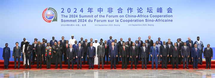 本報北京9月5日電 (記者王遠、王迪)9月5日上午,國家主席習近平在北京人民大會堂出席中非合作論壇北京峰會開幕式并發(fā)表主旨講話。習近平宣布,中國同所有非洲建交國的雙邊關(guān)系提升到戰(zhàn)略關(guān)系層面,中非關(guān)系整體定位提升至新時代全天候中非命運共同體,將實施中非攜手推進現(xiàn)代化十大伙伴行動。 中共中央政治局常委李強、趙樂際、王滬寧、蔡奇、丁薛祥、李希出席。 初秋北京,高遠澄明。天安門廣場和長安街兩側(cè),鮮艷的五星紅旗同53個非洲國家和非洲聯(lián)盟旗幟迎風飄揚。 習近平同出席峰會的51位非洲國家元首、政府首腦以及2位總統(tǒng)代表,非盟委員會主席和聯(lián)合國秘書長集體合影。 在《和平—命運共同體》樂曲和熱烈掌聲中,習近平同外方領(lǐng)導人共同步入會場,在主席臺就座。 習近平發(fā)表題為《攜手推進現(xiàn)代化,共筑命運共同體》的主旨講話。 ■中國同所有非洲建交國的雙邊關(guān)系提升到戰(zhàn)略關(guān)系層面,中非關(guān)系整體定位提升至新時代全天候中非命運共同體,將實施中非攜手推進現(xiàn)代化十大伙伴行動 ■中非要攜手推進“六個現(xiàn)代化”。要攜手推進公正合理的現(xiàn)代化。要攜手推進開放共贏的現(xiàn)代化。要攜手推進人民至上的現(xiàn)代化。要攜手推進多元包容的現(xiàn)代化。要攜手推進生態(tài)友好的現(xiàn)代化。要攜手推進和平安全的現(xiàn)代化 ■中國和非洲占世界總?cè)丝诘娜种唬瑳]有中非的現(xiàn)代化,就沒有世界的現(xiàn)代化。未來3年,中方愿同非方攜手推進現(xiàn)代化十大伙伴行動,深化中非合作,引領(lǐng)全球南方現(xiàn)代化。第一,文明互鑒伙伴行動。第二,貿(mào)易繁榮伙伴行動。第三,產(chǎn)業(yè)鏈合作伙伴行動。第四,互聯(lián)互通伙伴行動。第五,發(fā)展合作伙伴行動。第六,衛(wèi)生健康伙伴行動。第七,興農(nóng)惠民伙伴行動。第八,人文交流伙伴行動。第九,綠色發(fā)展伙伴行動。第十,安全共筑伙伴行動。為推動“十大伙伴行動”實施,中國政府愿為中非各領(lǐng)域務實合作提供強有力支持 ■中國共產(chǎn)黨二十屆三中全會對進一步全面深化改革、推進中國式現(xiàn)代化作出系統(tǒng)部署。這將進一步深刻改變中國,也必將為非洲國家、為中非共逐現(xiàn)代化之夢提供新機遇、注入新動能。非洲有句諺語“同路人才是真朋友”?,F(xiàn)代化道路上一個都不能少,一國都不能掉隊。讓我們凝聚起28億多中非人民的磅礴力量,在現(xiàn)代化征程上攜手同行,以中非現(xiàn)代化助力全球南方現(xiàn)代化,繪就人類發(fā)展史上嶄新畫卷,共同推動世界走向和平、安全、繁榮、進步的光明前景 |