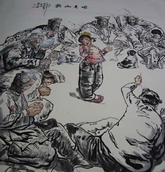 10、劉文西,1933年生于浙江省嵊州市,當(dāng)代畫家。1950年在上海進(jìn)入陶行知先生創(chuàng)辦的“育才學(xué)?!睂W(xué)習(xí)美術(shù),1953年入浙江美術(shù)學(xué)院,受潘天壽等先生教導(dǎo),1958年畢業(yè)后到西安美院工作至今。曾任全國文聯(lián)委員、原中國美術(shù)家協(xié)會(huì)副主席、中國畫藝委會(huì)委員,全國首批百位名師稱號(hào)獲得者?,F(xiàn)任黃土畫派藝術(shù)研究院院長、中國當(dāng)代畫派聯(lián)誼會(huì)主席、陜西省美術(shù)家協(xié)會(huì)名譽(yù)主席、西安美術(shù)學(xué)院名譽(yù)院長、教授、博士研究生導(dǎo)師,第五套人民幣毛澤東畫像創(chuàng)作者、陜西省文藝界聯(lián)合會(huì)顧問、全國有突出貢獻(xiàn)的專家。主要作品有《毛主席和牧羊人》、《陜北人》、《東方》、《解放區(qū)的天》和巨幅系列長卷《黃土人》等近百幅。1956年,任上海中國畫院畫師。1961年至1966年,赴浙江美術(shù)學(xué)院兼職山水畫教席;在此期間,其繪畫個(gè)性得以發(fā)展,最終在晚年形成了自己獨(dú)特的風(fēng)格。