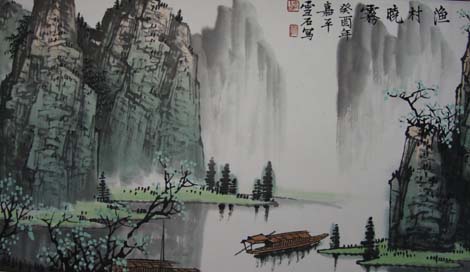 白雪石《漁村曉霧》34cm×138cm 啟功《書法》69cm×44cm 劉文西《人物》230cm×182cm