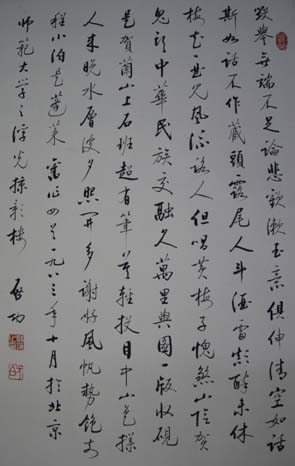 9、王十川(1923年生--卒于1999年),中國書法家協(xié)會(huì)會(huì)員,美國傳記學(xué)會(huì)研究委員會(huì)顧問。5歲至10歲向劉子固老先生學(xué)習(xí)篆書。青年時(shí)代拜意拳宗師王薌齋先生為師學(xué)習(xí)意拳,練就了“力透紙背”和“刀在石中行”的硬功。1982年參加“首屆中日書法交流展”。1983年參加《中日友好條約》締結(jié)五周年,由文化部在中國美術(shù)館舉辦的“中日書法藝術(shù)交流展”。受政府有關(guān)部門的委托,為日本友好人士西園寺公一、西園寺雪江夫婦,日本皇族嵯峨公元先生,為日本前首相田中角榮、中曾根康弘、竹下登及夫人竹下直子、海部俊樹等政界名流治印,為日本書道界治印共三百余方。1991年為轟動(dòng)一時(shí)的中國書畫百米長卷篆刻兩方巨?。?SPAN lang=EN-US>20cm*20cm)-“弘揚(yáng)民族文化”、“振興民族精神”及壓角印一方。1991年被美國傳記學(xué)會(huì)收入《世界名人錄》一書。 1992年又被美國傳記學(xué)會(huì)收入《本世紀(jì)最受尊敬的人》一書。